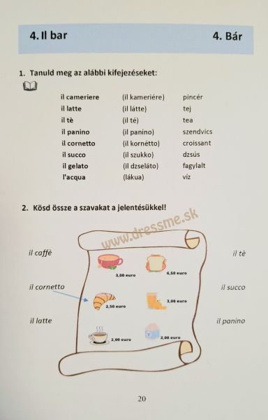 - taliansko-maďarský slovník (260 slov),